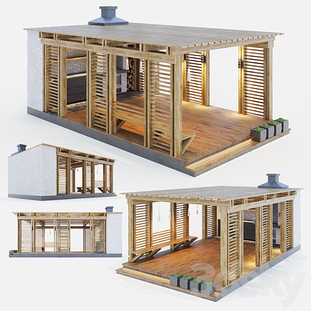 Pro 3DSky - Wooden Gazebo with Summer Kitchen