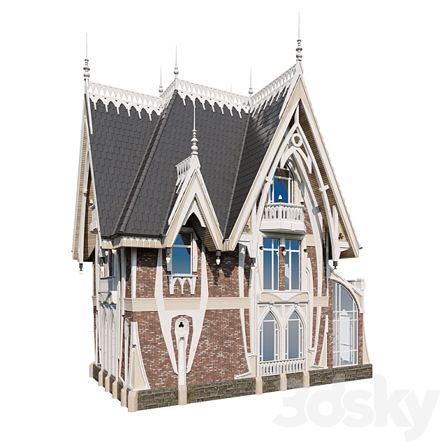 Pro 3DSky - Two Storey Wooden House with a Porch