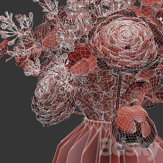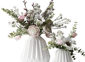 Pro 3DSky - Two Bouquets in White Ribbed Vases