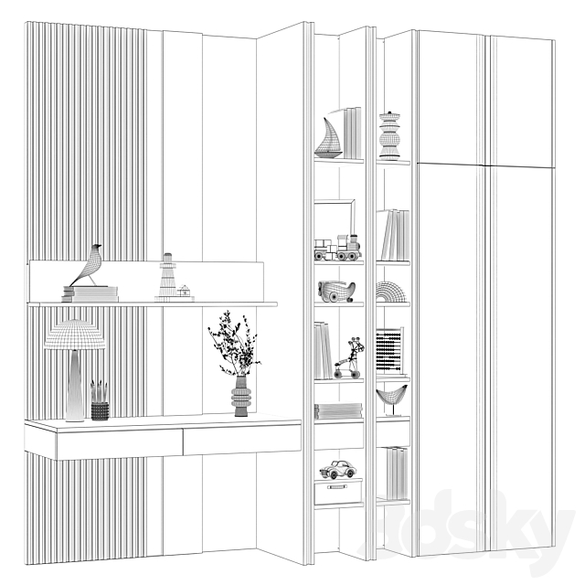 Pro 3DSky - Childrens Modular Wardrobe with Desk Modern 35